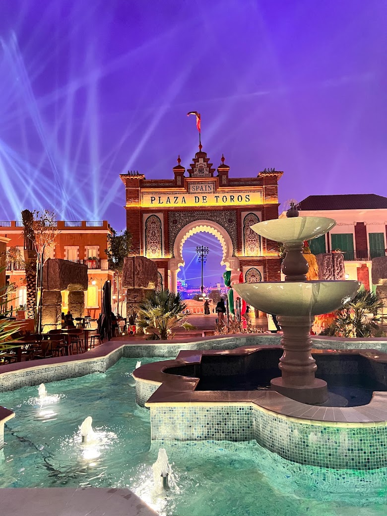 حیاط، با سنگ مرمر سیاه، قرمز و سفید پرچم گذاری شده است.